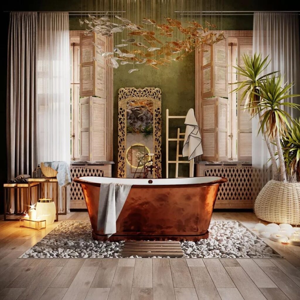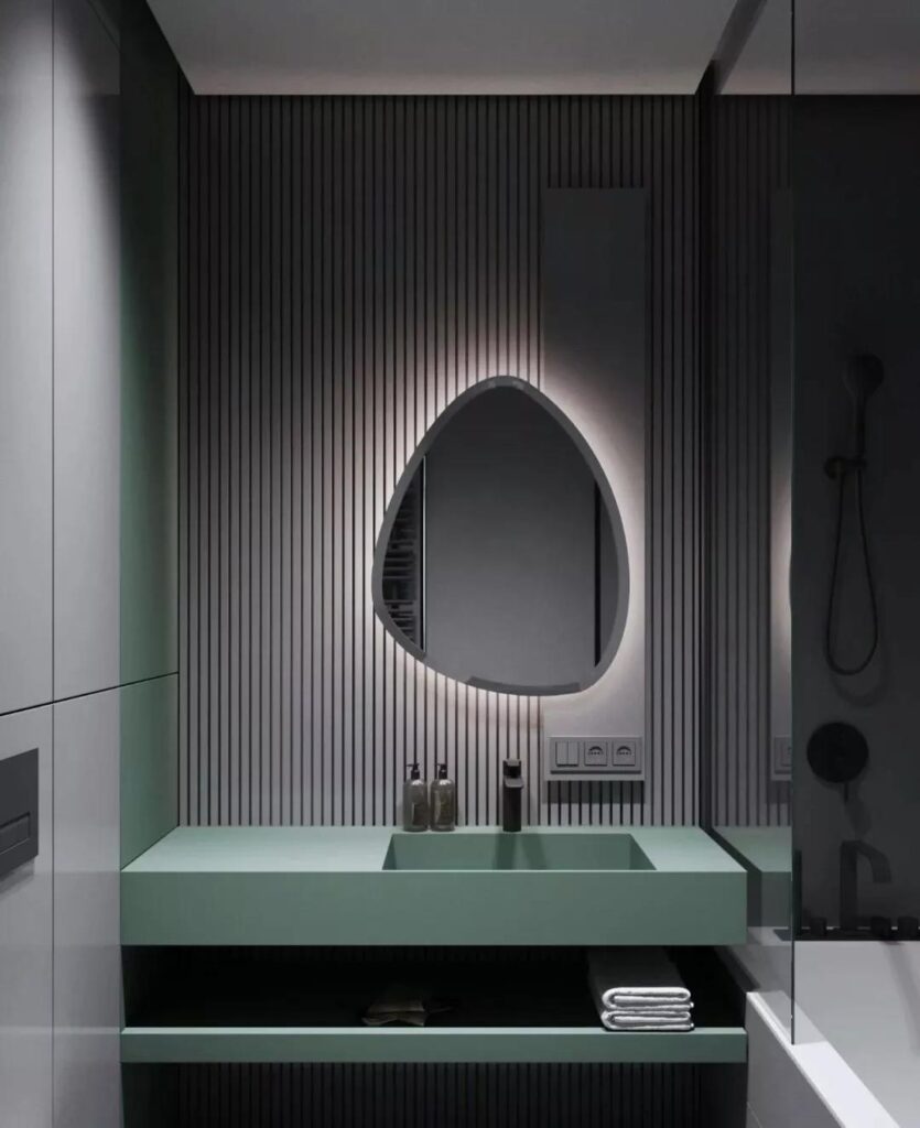 Designers start to consider installation art to enhance the artistic atmosphere in the bathroom. Matching owner’s temperament and taste, the design style of the space would be increased a lot. Sometimes a bathtub itself is a piece of art adding more shine to the overall space.