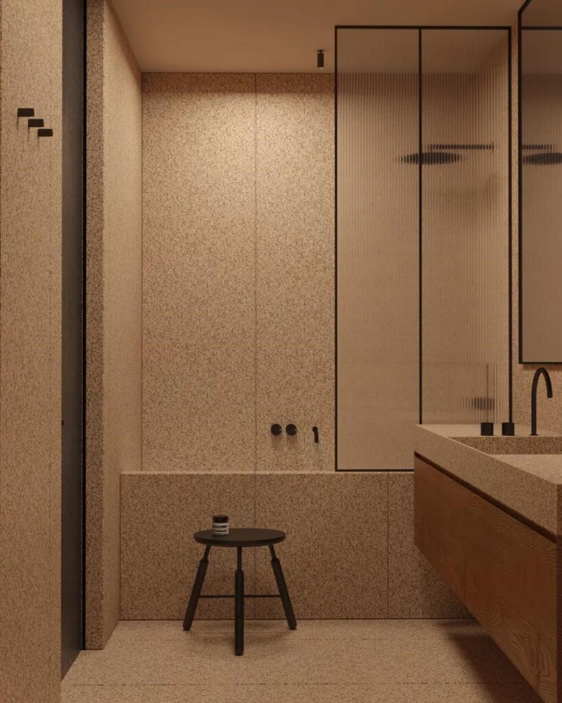 Terrazzo tiles come back into design community as fashion item in recent years. They are perfect for bathroom interior design as they match perfectly with different kinds of materials and textures. Terrazzo have a variety of textures and colors can be selected to meet the specific needs of space.