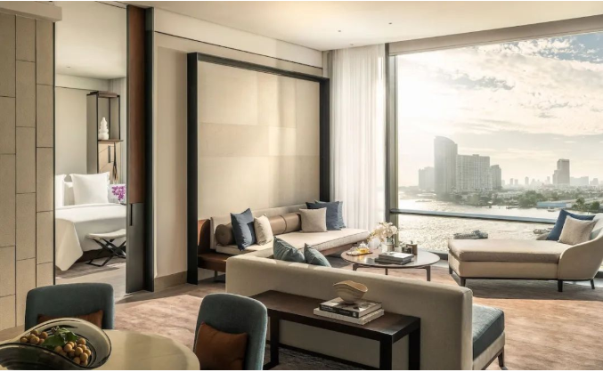 曼谷湄南河四季酒店以“水”作為設計靈感,前瞻的設計將泰國的自然美景與曼谷的歷史與現代元素完美地融合為一體。