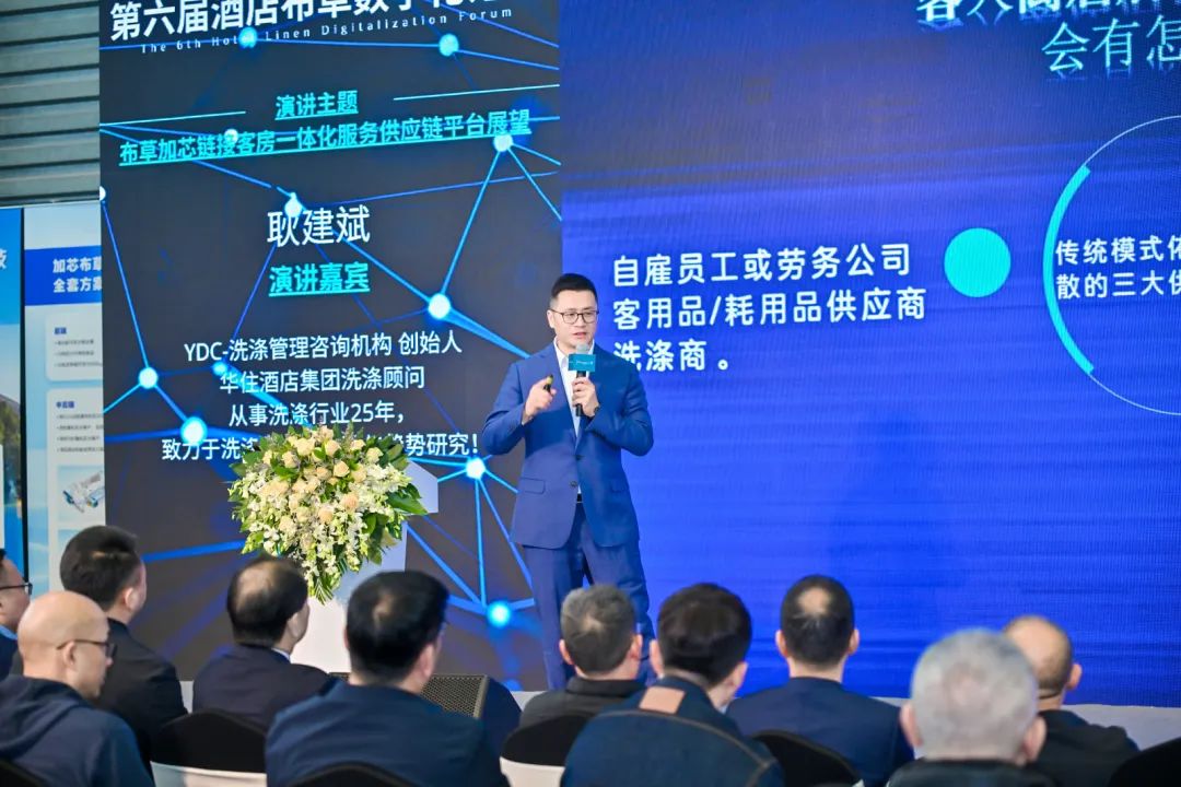 YDC洗滌管理咨詢機構創始人、華住酒店集團洗滌顧問耿建斌先生,著眼于酒店業主投資行為催生的商業形態,提出了打造客房后端服務供應鏈一體化平臺的前瞻性構想。他深入分析了酒店業主在 “投前、投中、投后” 三個階段催生的商業形態,指出當前客房后端服務供應鏈存在的痛點,并闡述了一體化平臺的核心優勢,包括整合供應主體、實現高度共享和協作、提升供應鏈集約價值等,為行業未來發展描繪了新的藍圖。
